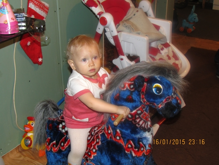 Моя девочка Лерочка выросла, из умелок все умеет, любимые игрушки это кастрюли, ложки, баночки всякие. Кушает все.На рождество у нас вылезли долгожданные зубы сразу 2, к году уже их стало 4, ну хоть так, а то я думала вообще будем год отмечать без зубов, титю так и сосет, пора отучать, ниже напишу по какой причине)))