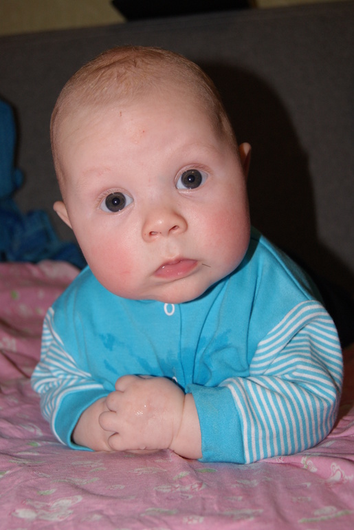 1 января сынок порадовал нас переворотом со спины на живот. Тянется к игрушкам и конечно сразу их в рот, но кулак все-равно вкуснее. Улыбается всем и сразу начинает отворачиваться (может стеснение так показывает). В голос не хохочет, но по крайне мере как это дела его сестренка, она аж заливалась месяцев с двух. А он просто взвизгивает. Видимо серьезные мужчина растет. ОООООчень любит плавать. Научился подпрыгивать в ванне и с кругом мы попрощались, сразу вода стала заливаться. теперь только на ручках и очень активно и очень много. Даешь ручки сразу подтягивается. очень любит смотреть на люстру и разговаривать с ней. И немного фото.
