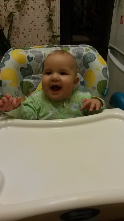 Уже попробовали овощи-брокколи,кабачок,цв.капусту и пару ложек тыквы,по началу плювался и порой аж передергивало,но под конец успевай только ложку засовывать)))