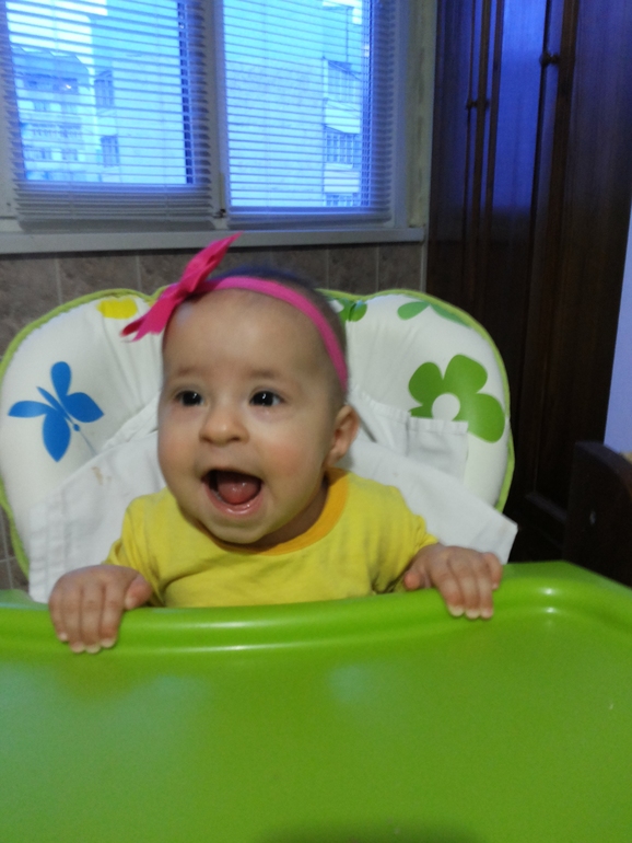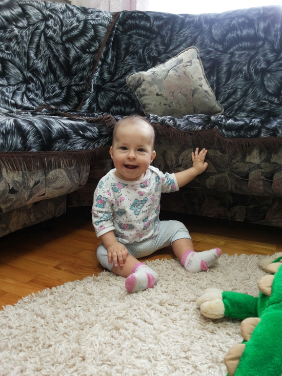 .В 6 месяцев и 1 неделю она научилась хорошо сидеть и подолгу играть сидя на полу.В 6 и 2 недели начала ползать как положено,а не на животе.Теперь лезет в каждый угол.Через пару дней Лерочка наконец поняла как можно сесть из положения ползания на попу.В 6 и 3 недели встала сама в кроватке держать за бортики.Теперь покоряет другие предметы(диван,стул,коляска),вообще стоим везде где только можно.Старается стоять без поддержки,но падает на пол,плачет и сново встает.Упертая моя девочка.Теперь за ней только и следи.