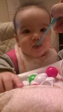 Аминочка, по-прежнему, на ИВ ( я не парюсь по этому поводу; главное, чтоб не голодал ребенок). Ест смесь "Нестожен" (пробовали "Нутрилон", "Малютка", "Симилак" - то срыгивала фонтанами, то не могла сходить в туалет). Ввела я прикорм: пюре овощные (цветная капуста, брокколи, тыква, морковь - в приоритете у дочки тыква