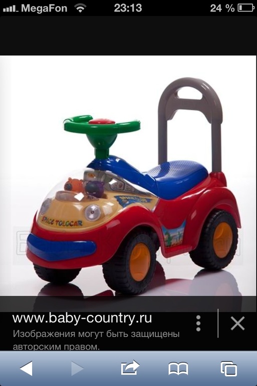 У нас такая. Space tolokar. Ребенку нравится. Кататься сам пока не достает. Но он сней учился ходить. Только если держаться за ручку сзади она не очень устойчива. Мой брался за руль и ручку и двигал ее юзом. Кататься на ней тоже любит. В ней музыка ( громковата, но мы привыкли), огоньки пляшут. В общем уже два месяца нам игрушка актуальна и любима ребенком