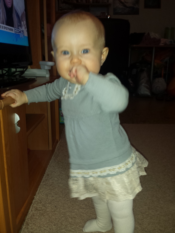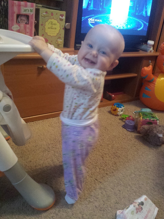 Физическое развитиеУже 8! Такая большая девочка уже,совсем не верится. Вес 7005,рост 67. Дюймовочки)))) Все у нас отлично,только небольшая аллергия какая то,на шее,больше нигде нет,даже особо не понимаю на что. Надеюсь,скоро пройдет,отменила всё,на что было подозрение. Ну обо всем по порядку 1. Кушаем: завтрак каша молочная (мало кушает на завтрак примерно 90-100г), обед либо супчик варю,либо пюре мясо+овощи,полдник творог+фрукт.пюре, ужин каша, ночью смесь и воду,грудь мы больше не кушаем,надеюсь скоро отучить от ночных кормлений. 2.спим : 2 раза в день по 1.5- 2 часа на улице,дома спит мало поэтому хожу гулять 3. Физ.развитие: садится,ползает,встаету опоры и с легкостью держится только одной рукой,робко ходит у опоры. А вообще очень активная,энергичная и веселая. 4. Зубы: 2 нижних есть, педиатр сказала,что прям совсем наготове 6!!!! Лиза ночью немного капризная 5. Укладывание спать: пришли к тому,что кормлю кашей,лежим вместе и Лиза потихоньку засыпает (иногда быстрее,иногда тяжелее,зависит от многих факторов) 6. Занятия: возобновили бассейн,есть определенные успехи, думаю будем заниматься до победного)))еще дошла очередь на массаж,в поликлинике,тут отдельная история: тетка делает без души,многого конечно не жду,посмотрим. Эмоции переполняют каждую секунду глядя на дочку,думаю меня поймет каждая мама. Очень люблю свою куколку!
