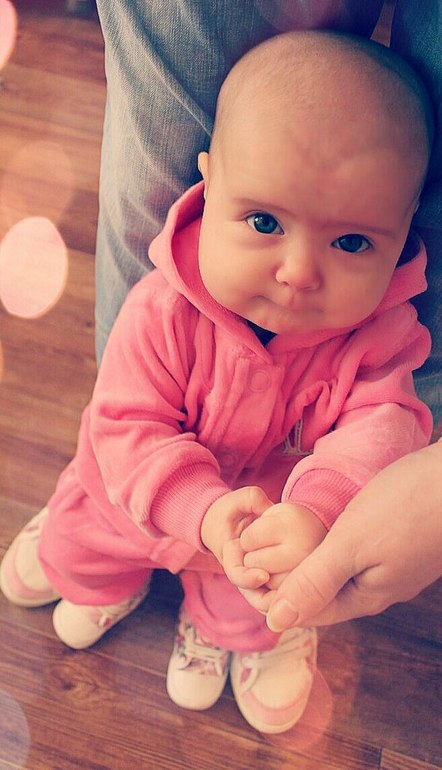 Какая прелестная малышка. Мы пытаемся ходить с ручками , нам 8 мес. Ходунки используем, но без восторга со стороны ребенка.
