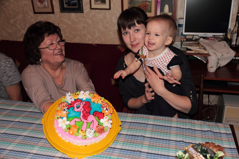 День рождение отметили тихо-скромно, пришли бабушки-дедушки, пообщались, именинница вела себя хорошо))) Тортик на 2 год уже буду делать домашний, тогда и дам попробовать. Немного фоток с Днюхи)))