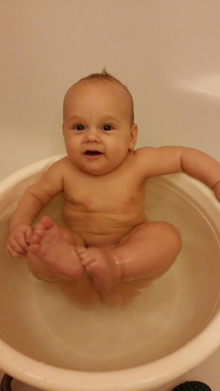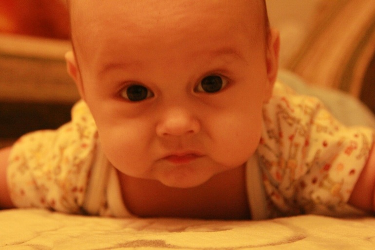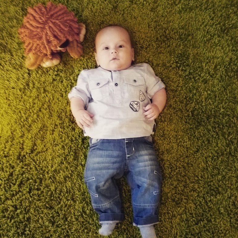Этот месяц у нас прошел очень хорошо! из новенького у нас в ротике добавилось 2 маленьких нижних зубика, ура ура, я была такая счастливая, когда услышала долгожданные дзынь дзынь)) зубки вылезли без проблем, единственное - плавали в Лёвушкиных слюнях 2 месяца:)) постоянно двигаемся, ух.. еще тот шилопоп будет! Ему буквально надо потрогать и облизать всё!!! Сидит на руках и показывает куда идти, маленький царь:)) Проявляет интерес к еде?? но я жду 6 месяцев. Пока держусь и его держу)) зато попробовал уже облизывать морковь и корку хлеба, больше всего понравилось жевать салфетку. Ест сисю - у меня учеба.. поэтому пришлось во время моего отсутствия давать смесь. Молока стало меньше.. Но я не переживаю, осталась неделя и на преддипломной практике буду дома! Остается с удовольствием с бабушкой, но когда я прихожу, он награждает меня улыбкой и поцелуем..да-да..лезет целоваться)) открывает рот и облизывать мою щеку и губы)) ни к кому такой любви больше не испытывает.. ради этого бегу домой.. и ловлю кайфушки??? Спит сначала в кроватке, в час перекладываю к себе и спим в обнимку до утра! Стали просыпаться в 8.. это жесть конечно.. но чтож, так захотел Лёва! Нам простым смертным этого не понять.. Зато 1 раз в день долгий сон, остальные раза 3-4 спим по 30-50 минут:) Купаем его через день, ныряем без проблем:) иногда когда совсем лень, стали в тазике купать..и так и так куп куп мы очень любим.. он балдеет от воды.. А я балдею от него и очень сильно его люблю!!!