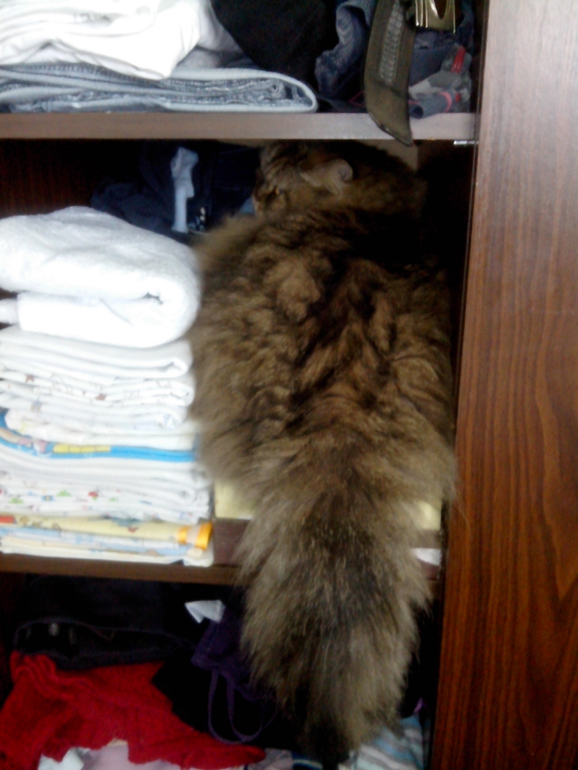 Кекс тоже балдеет от него и всегда пытается сам лезть на рожон и лезет к нему в шкаф с вещами