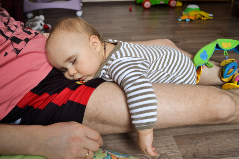 Бывает, приползает ко мне или папе, ложится, поет песенки (аААааАбаайБААЙ) и сама вырубается)