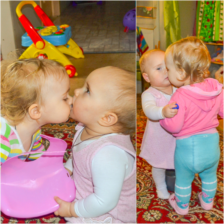 Ездили в гости к бабушке и племяннице на дачу. Девочки (Сашка старше Насти всего на полгода) общаются уже абсолютно на равных, играют, ходят, периодически целуются - это просто умора, мы ржали смеялись в голос)) Подходят, заглядывают друг другу в лицо иии целуются! Как только понимают друг друга? В целом хорошо отдохнули, если бы Сашенька не заболела, побыли бы дольше!