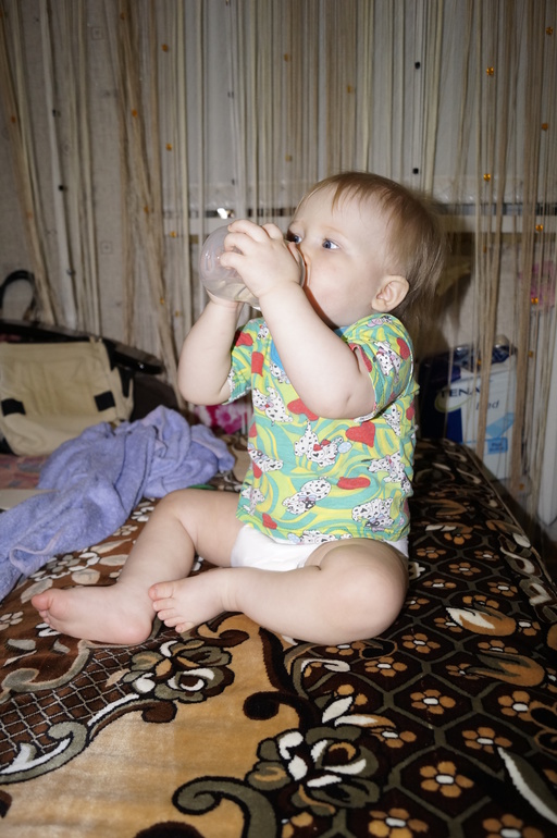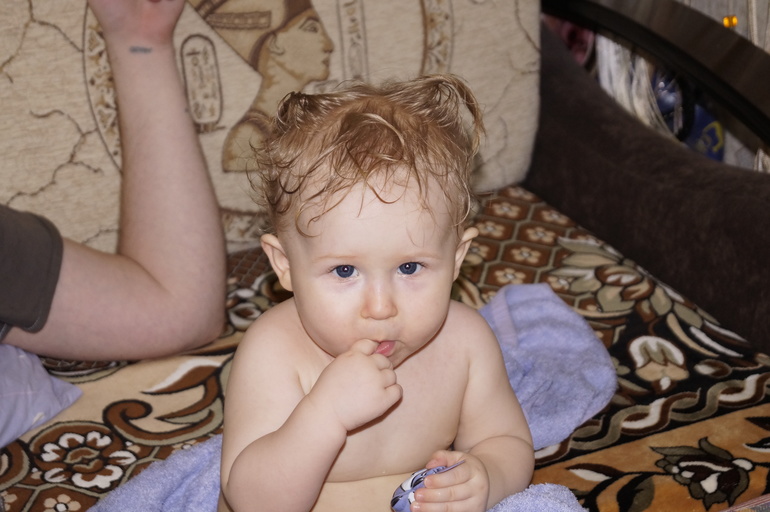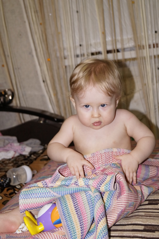 Дома, по-прежнему, разгуливаем без подгуза. В трусиках и майке и практически всегда босиком. (Даже свекровь вчера признала (что редко бывает), что я правильно делаю, что закаляю её с "младых когтей".