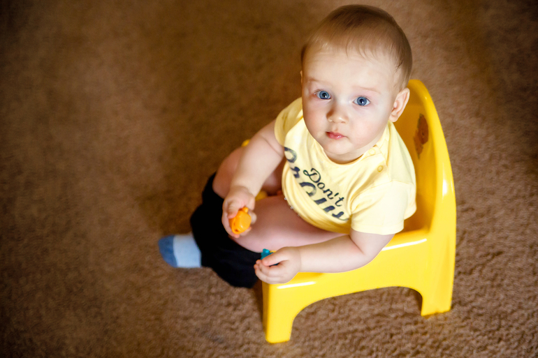 Началась у нас по-тихоньку дружба с горшком. Пока не часто его туда высаживаю (примерно 2-3 раза в день), но практически каждый раз он туда какает или писает.
