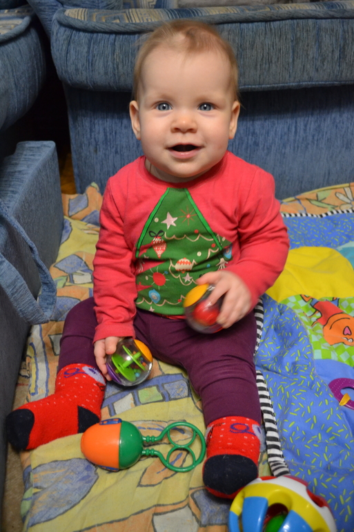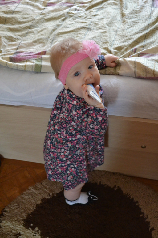 Физическое развитиеПринцесса моя растет на глазах, мудреет, хорошеет, умнеет))) Такая смышлёная стала! Носится по квартире как метеор на четвереньках, встаёт где только можно, особенно нравится за мои штаны цепляться и голову между ног моих просовывать))) А вообще она мамин хвостик, везде за мной, куда бы я не пошла и постоянно на ручки просится)))