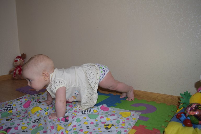 Ой мы тоже ждем ползаней))) все, на месте ему уже не интересно ни как! Крехтит, пыхтит, но пока получается максимум лежа до чего то близкого доскребсти))) психует)