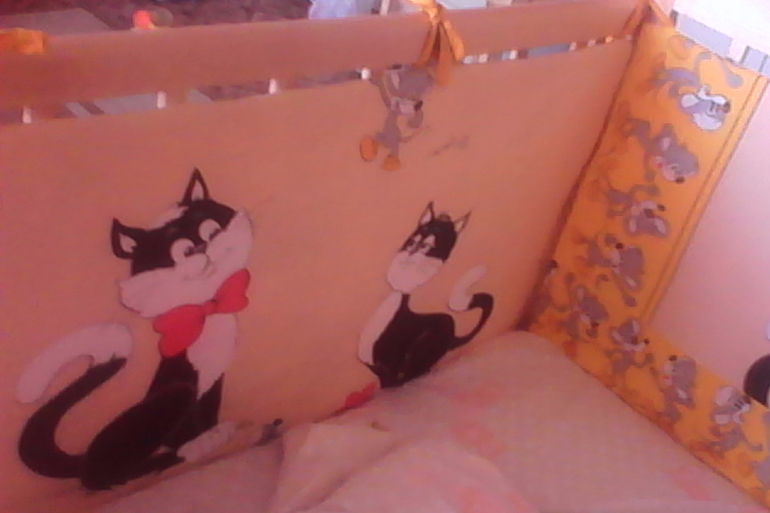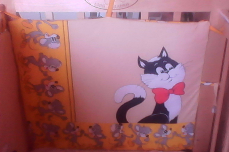 Вы молодец!! Мы тоже сами пошили, а то в магазине ого-го сколько стоят.Правда поролон толстоват оказался (муж покупал), но ничего, главное безопасно. Сынок часто головой стукался о бортики кровати