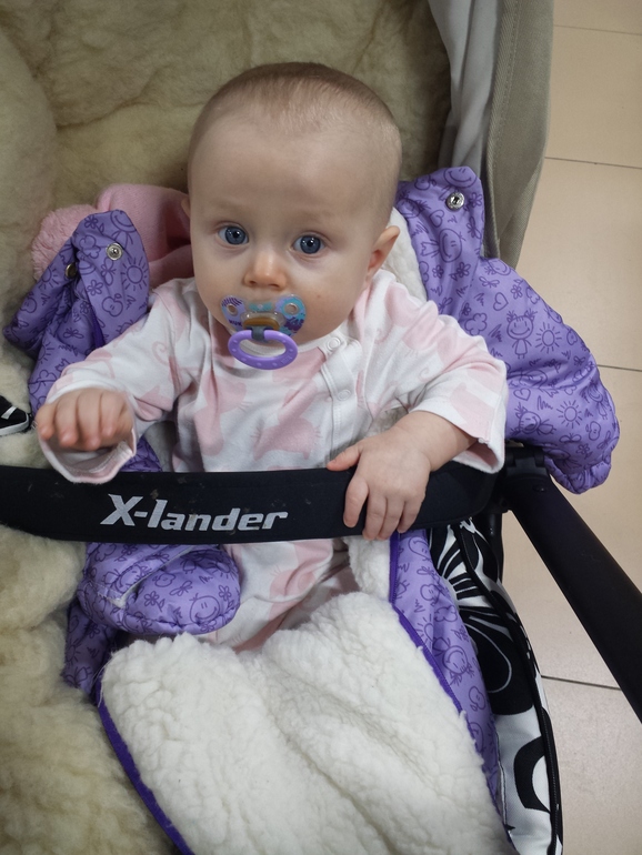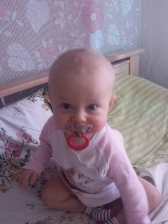 Лиза лихо ползает,за что получила прозвище таракашка,встает,ходит вдоль опоры, за две ручки,за одну совсем немного, побаивается пока. Стала иногда отпускать руки га несколько секунд, но стоит пока очень неуверенно. Машет привет,пока и делает шарики-фонарики,ладушки ногами только,но очень забавно. Умеет играть сама. Соображает в некоторых игрушках как с ними играть,например знает как запихивать мячик в дырочку и он скатывается по горке,берет и обратно запихивает.