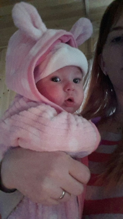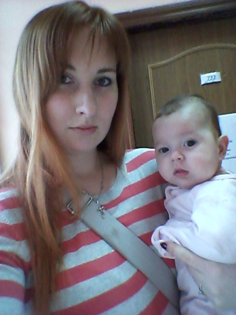 миниатюрная?)) там такие щечки)))и почти 7,5 кг веса))она недоношенная родилась права...А муж когда побреется действительно как подросток))но он и так не старый,ему 27)))