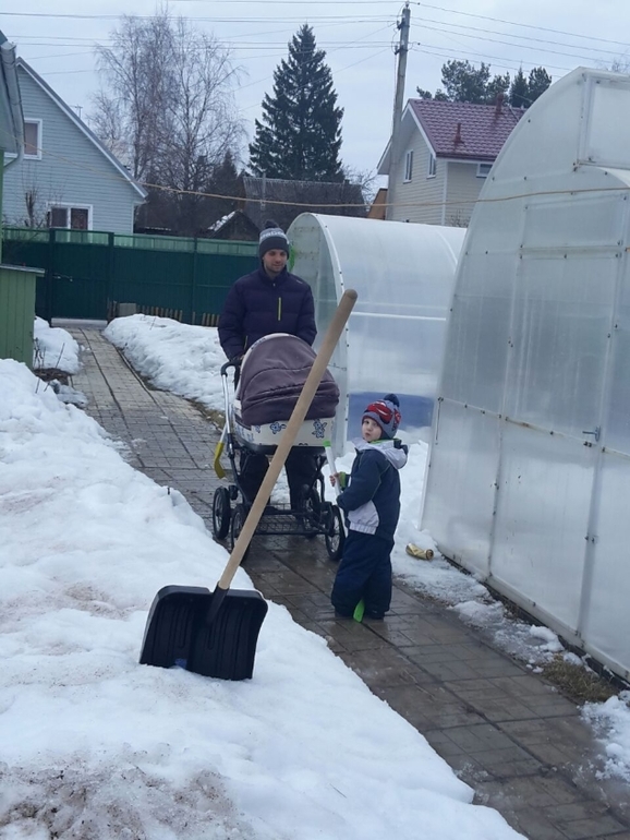 снега на нашем участке мало уже,так как отчим мой ездил всю зиму каждый выходной и чистил,а так на соседних участках-очень много снега!