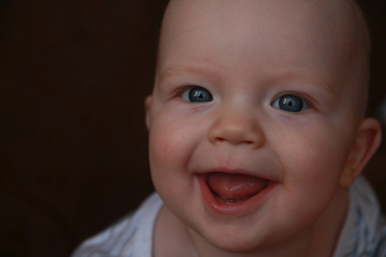 Очень любит мамку за волосы тянуть)) а так же обнимать и целовать))