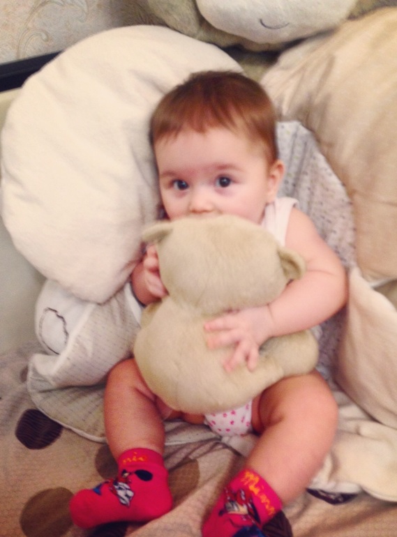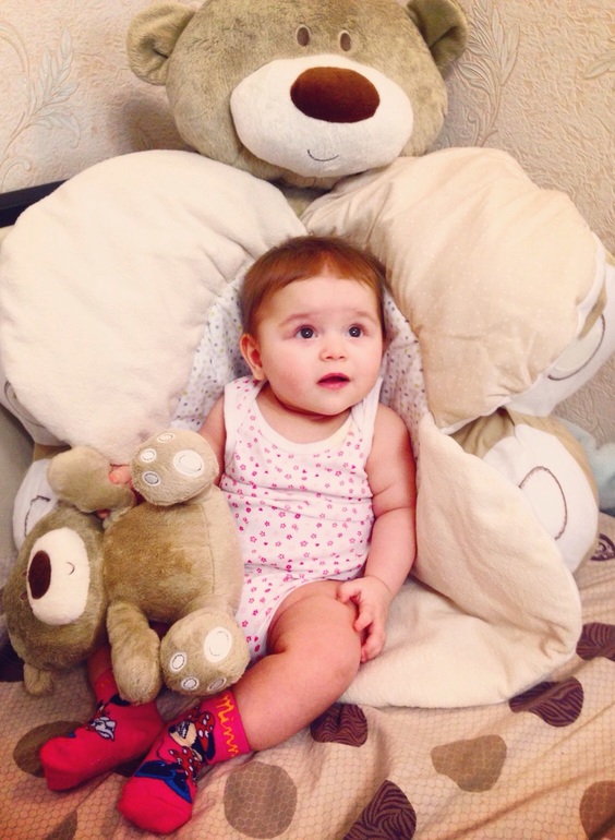 И так, за этот месяц Варвари стала обладательницей целых двух нижних зубов. Прорезывание зубов это конечно *опа, но результат оправдывает мучения. Теперь эти маленькие колючие жемчужинки Варвари исследует вовсю, на предмет прочности окружающих ее предметов. Больше полосок в деснах не вижу, но менее капризной Варвари стала ненадолго. Спустя неделю опять за плач, опять зубы!?