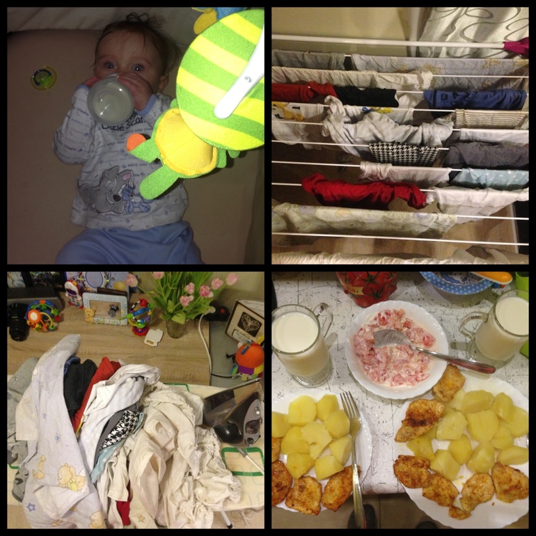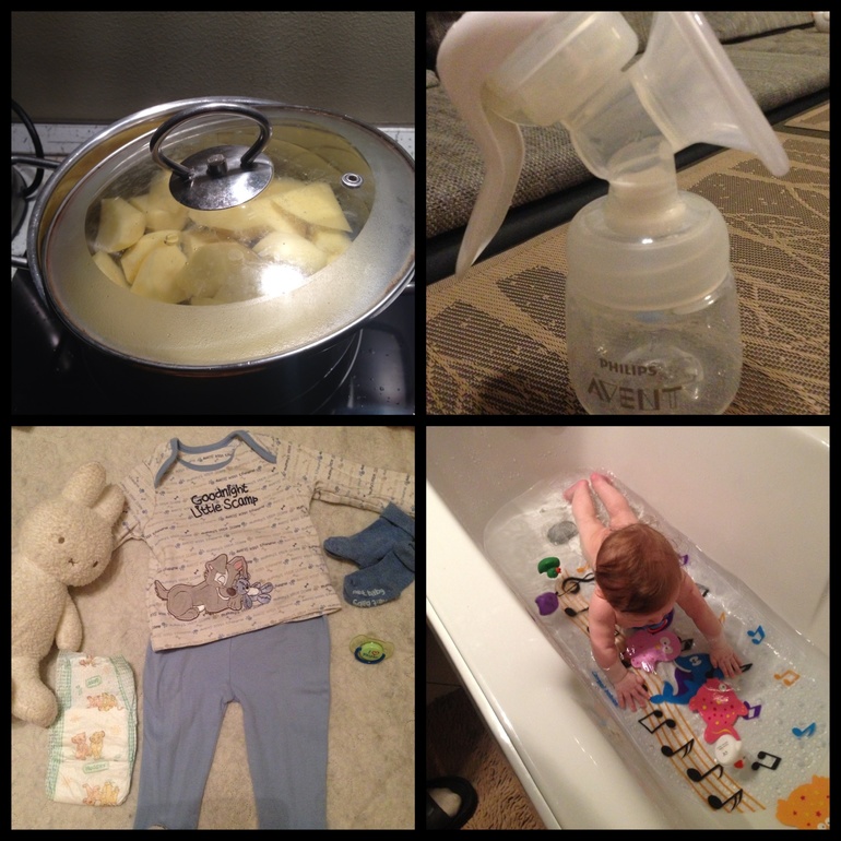 Папа идёт купать сына, а я тем временем ставлю варить картошку, сцежеваю молочко, подготавливаю всё для сна.