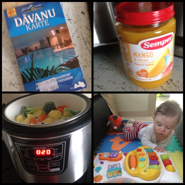 Мы ей хотели отдать подарочную карту в бассейн, т.к. срок использования подошёл к концу, а сами не хотим ехать(покупали её ещё когда я с пузиком ходила, так и не съездили), а она принесла Максимке вкусняшку, будем пробовать)) И сразу же ушла от нас, а я быстренько готовлю овощи для Максимки, пока овощи парятся я иду играть с сынкой)