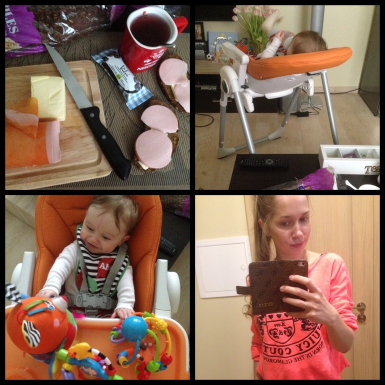 Пока Максимка мусолит свою бутылочку с молочком, я тем временем делаю себе завтрак. Покушала, можно и привести себя в порядок) Даю Максимке игрушек и убегаю в ванну)