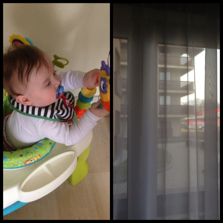 Сынок пока играет в прыгунках я быстренько подметаю пол во всей квартире и проветриваю соседнию комнату)
