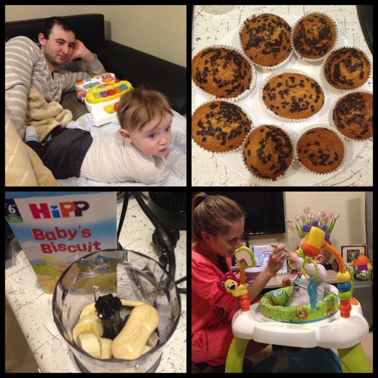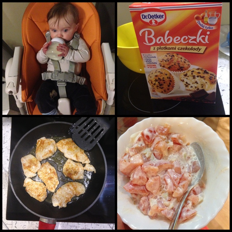 Максимка кушает молочко, а я тем временем кормлю мужа, потом берусь за кексики, и готовлю ужин, жарю курочку и делаю салатик)