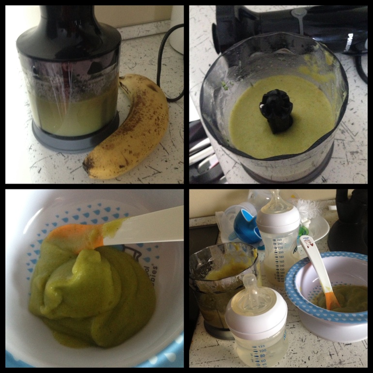 Решила сделать две порции, в одну положить треть банана, а другую сделать без банан. Проверить хотела, может уже согласиться уже есть овощи без банана.