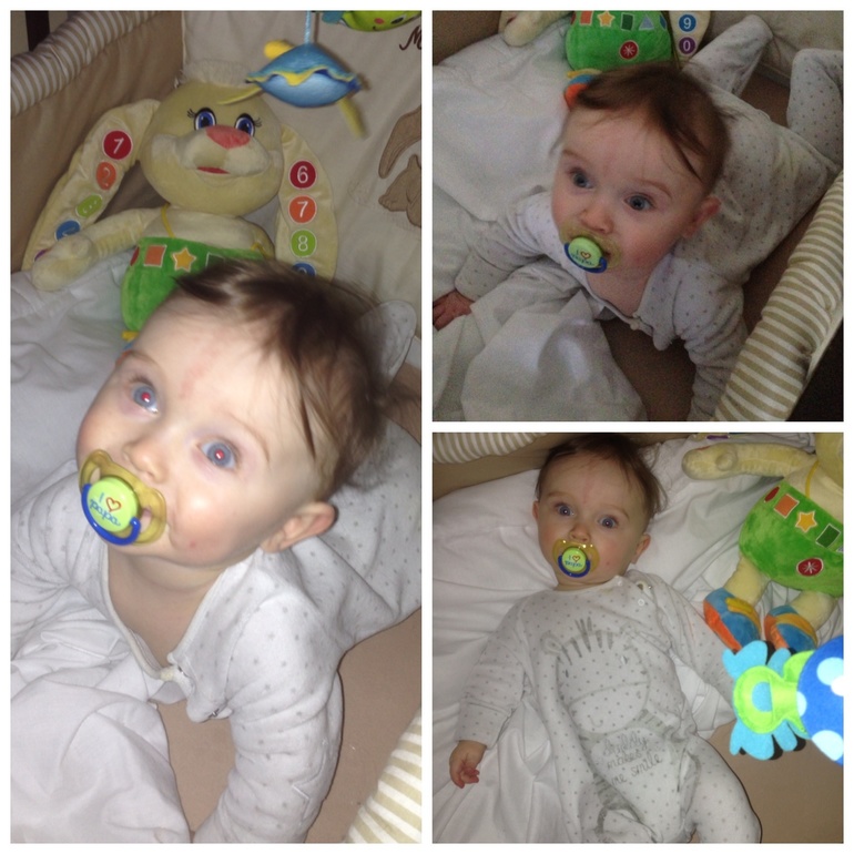 Проснулась от "разговорчиков" Максимки) Зашла нему в комнату, открыла занавески, лежит такой давольный. Ждёт завтрака и утренние процедуры)