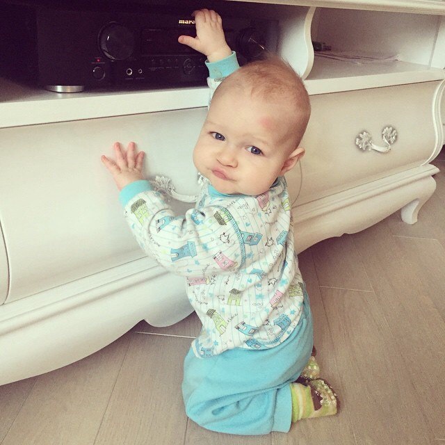 - Ползает по пластунски ооочень быстро, а теперь еще и встал и пополз на четвереньках. Правда, на четвереньках ползает всего 30% времени, в остальном все равно на пузе