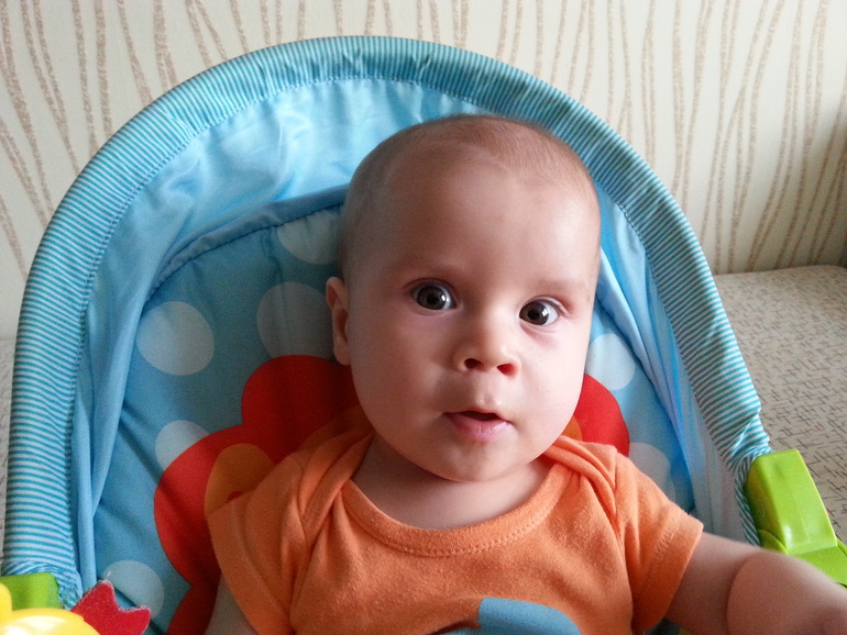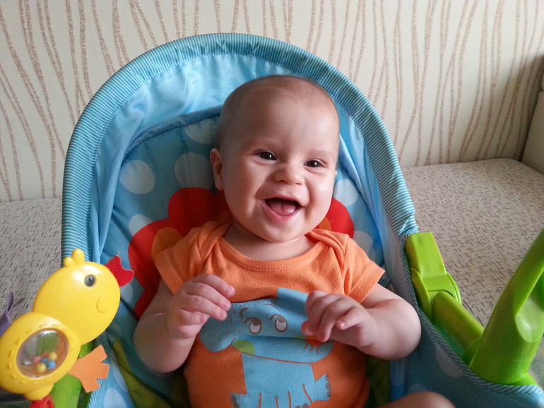 Ты знаешь лежит в нем, играет, но не долго, как в принципе и на стульчике, и на диване....ему надо внимание чтобы на ручки взяли, поиграли, походили по квартире....может когда сидеть сам начнет подольше будет в нем находиться, посмотрим)))