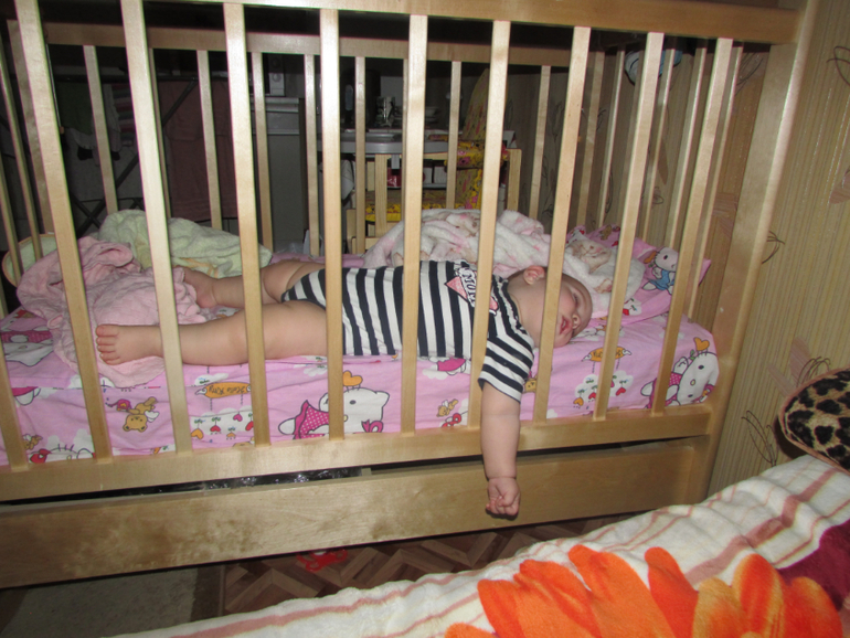7. Научилась вставать в кроватке,так как ползать начала,и вставать у опоры.Теперь бедная кроватки,все эти танцы-шманцы ,ей наверное не по душе=)