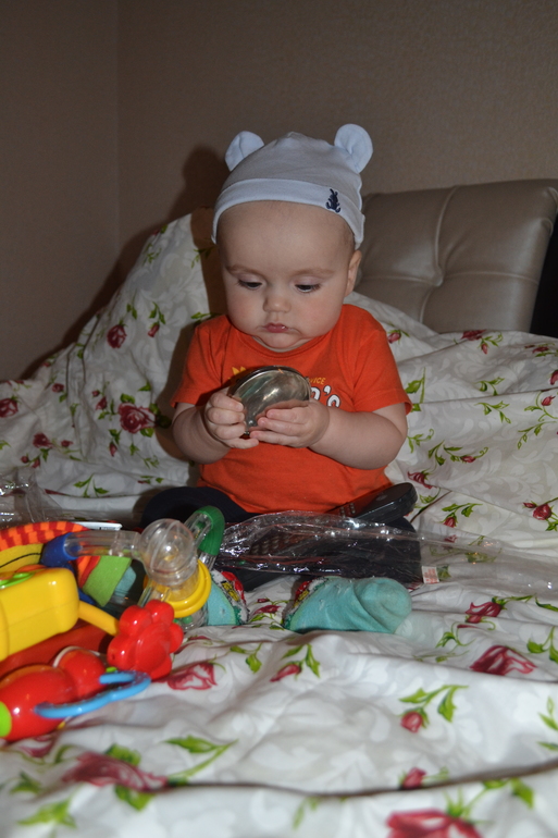 за этот месяц главное наше достижение - начал сам вставать на ножки, в 7мес и неделю. ну и все понеслось, встает везде, где можно за что-то ухватится))) приседает и ходит держась за опору.