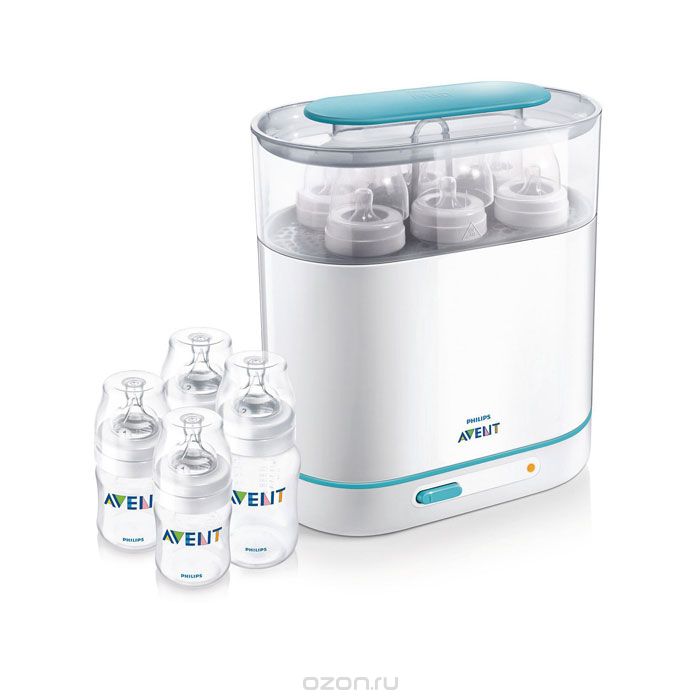 Далее в списках полезностей стерилизатор. Опять Avent. У меня он паровой. Вещь удобная и необходимая, особенно для тех, кто на ИВ или СВ. Ну и бутылочки тоже у них очень клевые.