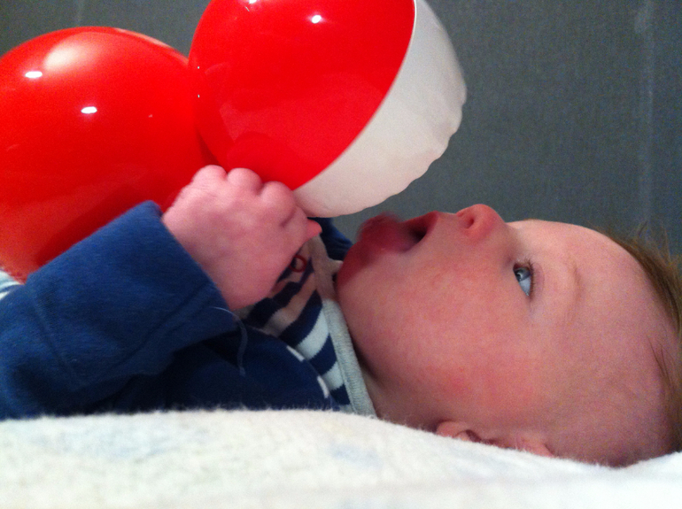 -хватает все игрушки, которые я показываю ему и тянет в рот