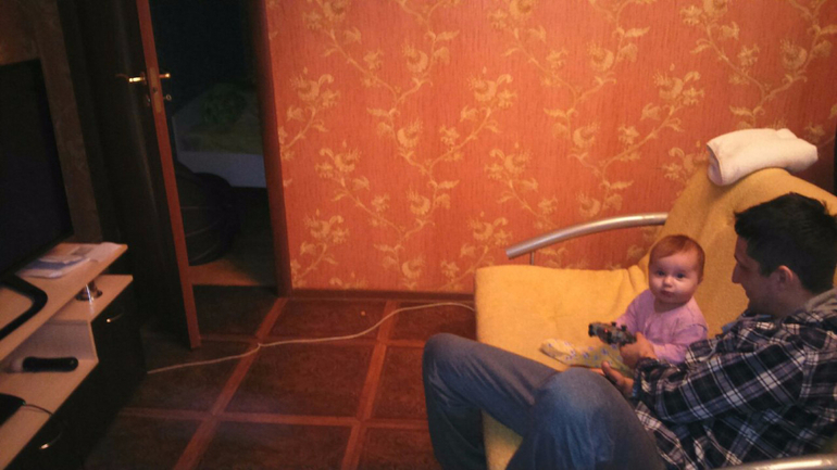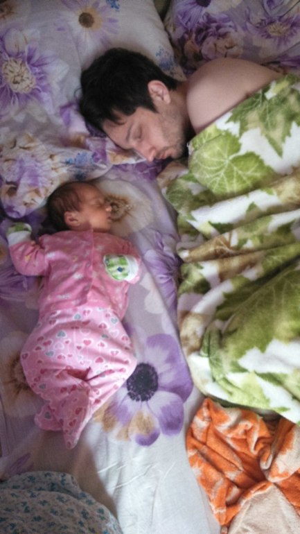 Все начиналось вот так. Пока малявка была совсем маленькой, папа привыкал быть папой и вел себя относительно правильно.