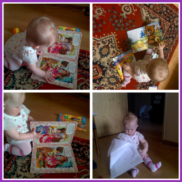 Игры:Колечки на пирамидку можем поодевать,но только на радость маме.Наш хит яйца томми,что она в них нашла незнаю,но они реально надолго ее занимают.Часто не даю,только когда нужно,чтоб не надоели.Любит панель на ходунках,все у нее там должно играть всегда,поэтому и полюбила с ними ходить.Показывала ей как бросать шарики,отказывалась,потом как то сама начала не оторвать,теперь уже во все отверстия старается,что-нибудь,да просунуть. Книжки любит, кашу по столу размазывать пальцем,то есть узоры рисовать,памперс на голову одеть,постучать и так далее.Игра в ку-ку стала настоящей игрой в прятки,так круто,папа наш очень проникся,даже придумал в ванну за шторки прятаться,Варя так удивляется,когда она уже у цели,а найти его не может)))Решили,что пора нам тоже заняться рисованием,Варе нравится.Наши краски морк.пюре,каша погуще,брокколи,размятый банан-красоту творим!!!!