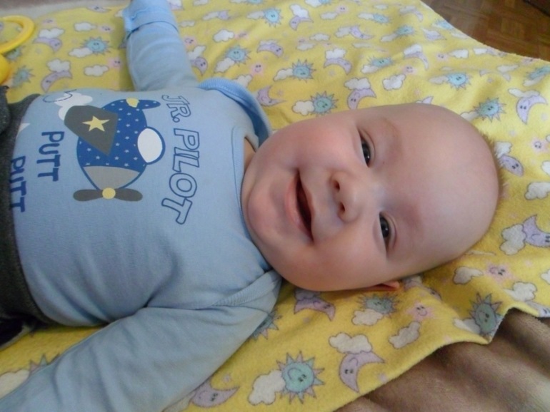 ХвастаемсяВот,я наконец-то и собралась с мыслями. В прошлом месяце все времени не было за ноут сесть,так что отчет срезу за 2 месяца. Мы уже большие. Ванечке 5 месяцев! Были у невролога ,наконец-то нам дали заключение,что все у нас в порядке,разрешили прививки. 14 марта нам сделали первую АКДС. Перенес малой ее в общем не плохо. Почти не кричал когда его укололи,и на ножку не жаловался. Правда первую ночь после прививки мы спали только 2 часа,то скулили,то болтали,то ели. Сутки маленький температурил,но не кретично,и капризулил. Висел на руках. Так что думаю что с первой прививкой мы справились не плохо.весим мы 9000 гр,рост где-то 69-70 см. точно не знаю,т.к в больницу в 5 месяцев не ходили. У нас в республике дикая эпидемия кори ,не хочу лишний раз тащить малого в заразник. Тем более перед прививкой малого взвешивали.За два месяца у нас куча умелок.море новых звуков. Маленький и поет,и визжит,и рычит. Он вообще у нас мальчик эмоциональный. И радость и недовольство у него на лице. Мимика это что-то, хитруль еще тот. Каждый день что-нибудь новенькое. Причем как только научится новым звукам, дня 2-3 не замолкает,потом вроде как забывает. Все пробует на зуб и на ощупь. Любит мягкие игрушки, мнет их рученками,и мося при этом довольная-довольная. Во рту у нас все-погремухи,пеленки,одежда. Что под руки попа лось-то и во рту.во всю пытается сесть, причем у него это неплохо получается. Хватает за пальцы, подтягивается и садится. Вот только не разрешаю я ему пока сидеть ,думаю рановато еще. Полусидя, пожалуйста,но пока не очень долго. Ванечка изучает свое тело, лупит себя по коленкам, достает лапки. Берет игрушки в обе ручки,перекладывает их из руки в руку. Любит все шуршащие. Стал заливисто смеяться! Перед сном сначало нахохочеться,а потом на боковую. Крутится с бока на бок,а вот на живот и с живота на спину все никак не хочет. Правда на животе стал лежать с удовольствием. Тянется за игрушками, сосет кулаки в положение на животе.а еще хватается за плед и пытается подтянутся,поднимает ноги,руки в стороны,прям как крокодильчик. Очень любит стоять. Сначала поддерживала под мышки,а сейчас иногда просто держит меня за пальцы и стоит,правда пока недолго. Узнает всех родных. Ванечка у нас мальчик общительный,без проблем бываем с ним на людях, ездеем с ним в гости. Ну,вот как-то так. Все сразу даже не упомнишь. Едим мы только сисю. Но хочу начинать прикармливать. Засмоктал малой меня уже. Да и интерес стал проявлять к тому,что мы едим. Прим в рот заглядывает. Вот думаю будем потихоньку пробовать новую пищу! А еще Ванечка стал подсасывать нижнюю губу и смокчет ее. А на днях сосал язык,это было что-то,такой смешной. Всех пытается съесть,как только возмешь на рука,ловит ртом нос или подбородок. Думаю что у нас зубы на подходе!