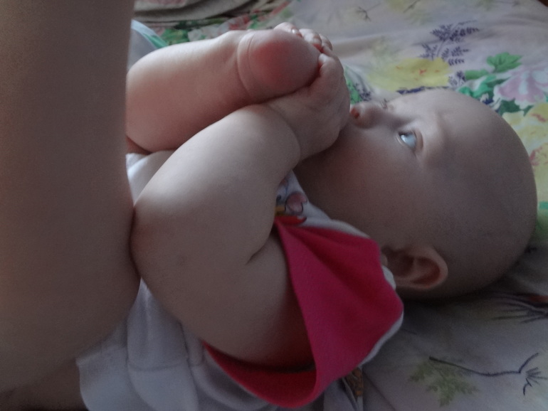 Ой я даже не ожидала))), одевала сына и слышу чмокает, думала ручку(сосет пальчик иногда), поворачиваюсь, а тут такая картина смешная))))