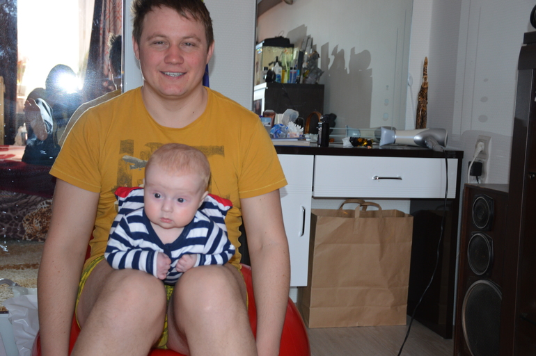 Четвертый месяц был ознаменован у нас первой простудой (небольшой, даже температуры, слава Богу не было) и первым падением(((( А еще где-то месяца в 3,5 ко мне наконец пришли материнские чувства...до этого было "принесли мне ребенка и за ним надо ухаживать" (в кавычках, потому что слова моей подруги). Зато теперь я понимаю, что такое сердце отдельно от тебя, когда оставляю Егора с бабушками...обожаю своего сладкого.