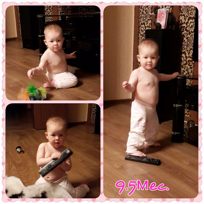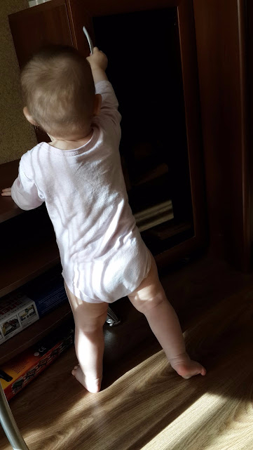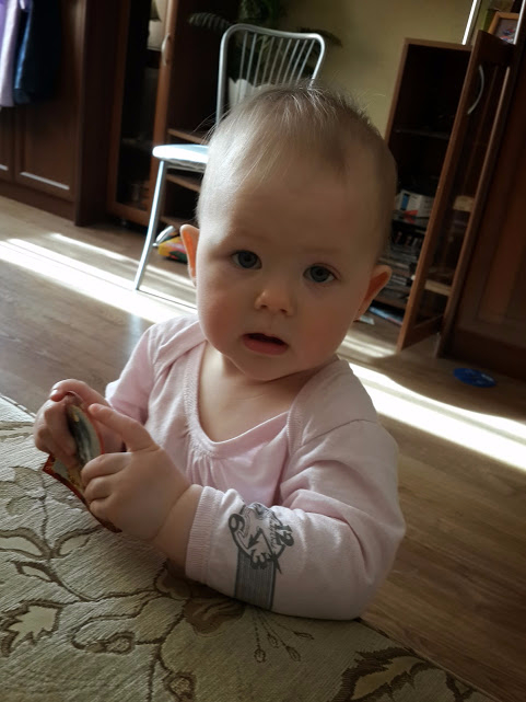 Умелки. Что мы умеем!? Не очень уж много умелок с прошлого месяца. Все что стало получаться месяц назад-в этом месяце мы закрепили и продолжаем закреплять! Главное достижение - мы делаем уже два шажочка без поддержки!!!! это так мило!!! Падает, конечно, потом, но все равно оттачивает мастерство: встаёт и встаёт! Кстати, сказать вдоль опоры она особо не ходит. Отворачивается от дивана и.... в центр)).На четвереньках можно сказать летает с космической скоростью. Стала показывать "Сороку" прям ладошку раскрывает и пальчик пытается загнуть. Всегда машет пока-привет. Одинаково. Но это уже не имеет значения ! Самое главное машет гостям и папе, приходящему с работы!!! Ну и если попросишь.