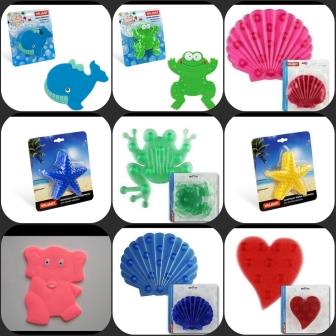 Для ванны купила силиконовые присоски (очень нравятся). Яркие, с пупырышками и т.д. После докуплю еще и будем клеить в обычную ванну)