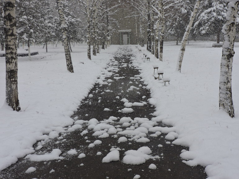 Блин, нас тоже засыпает снегом! С ума спрыгнуть! !! За зиму всего один раз высыпал, а тут нате вам, весной! !! Тоже пошли гулять в гордом одиночестве. Никого кроме нас и не было. 1,5 часа выдержала. Пока руки ноги не отмерзли, потом уждомой поскакали