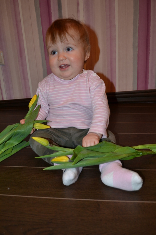 ХвастаемсяМоей сладенькой девочке вчера исполнилось 10 месяцев, время просто летит.К 10 месяцем у нас накопилось много умелок, и самая главная из них-Варька пошла, сама! Не верится, я даже разревелась)) К сегодняшнему дню, может уже метра по три-четыре проходить, как же я счастлива! Еще мы умеем махать пока-пока, привет-привет, хлопать в ладошки, танцевать (фонарики и ножкой одной топаем), ищем все знакомые игрушки и людей , которых знает, но пальчиком не показывает.Пальчиком показывает только на лялю, на упаковке из под сока или кефира, и на игрушках если что-то найдет)) ушки)Умеем пить из трубочки и дудим в дудочку.Знает где у мамы ротик и вытирает его полотенцем.Листает книжки с толстыми страницами, снимает с пирамидки колечки, если ей придерживать основание.Кормит собачку))нюхаем цветочки))Может чего и забыла, умелок уже так много.Любимые игрушки-стиральная машинка, уже научилась ее открывать, оторвать ее от машинки очень трудно.Шкафчики, оооо, это отдельная тема.Нет ни одного шкафчика, куда Варва еще не залезла.Нравится ей все доставать и обратно убирать) Кладет куклу в горшок или в коробку из под печенье, и во давай катать ее)) С каталкой тоже нравится бегать, только ее ей разворачивать надо.А болтать, мы так и не хотим, мммм, ггггу, ккки, ну и ааа естественно.Очень хочется первых словечек, мама,папа.Ну ничего, надеюсь дождемся скоро.Вроде все написала, люблю ее сильно сильно! ОНА НАШЕ СЧАСТЬЕ, РАДОСТЬ, ОНА-НАША ЖИЗНЬ!PS/Добавила Варькиных фоток