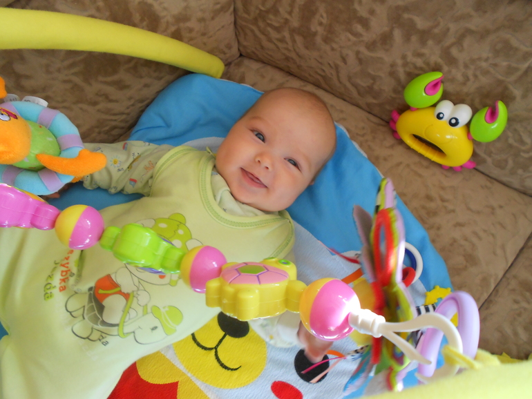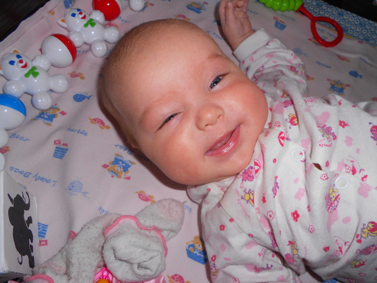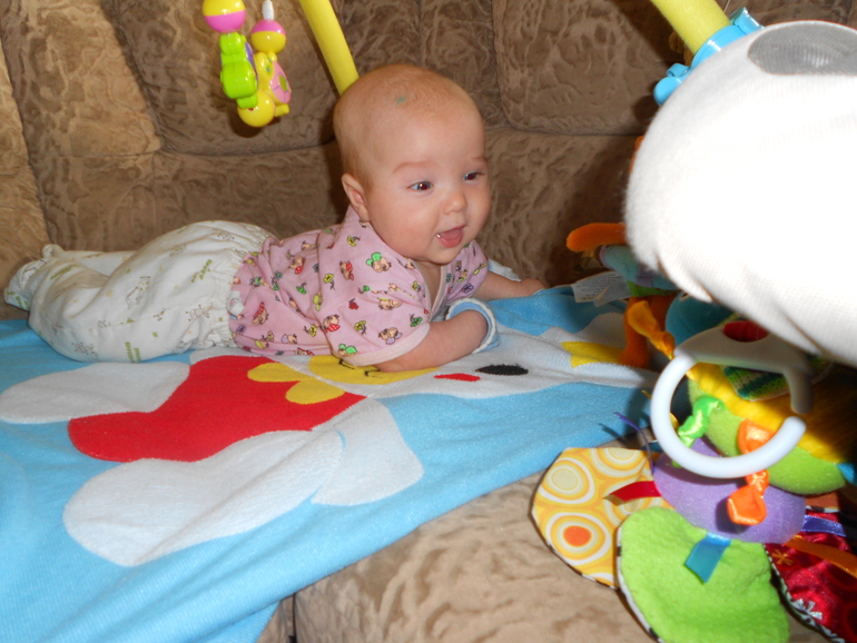 Вовсю улыбаемся беззубой улыбкой, узнаем маму и папу. Для меня огромная радость и счастье видеть улыбку своей Красавицы!!