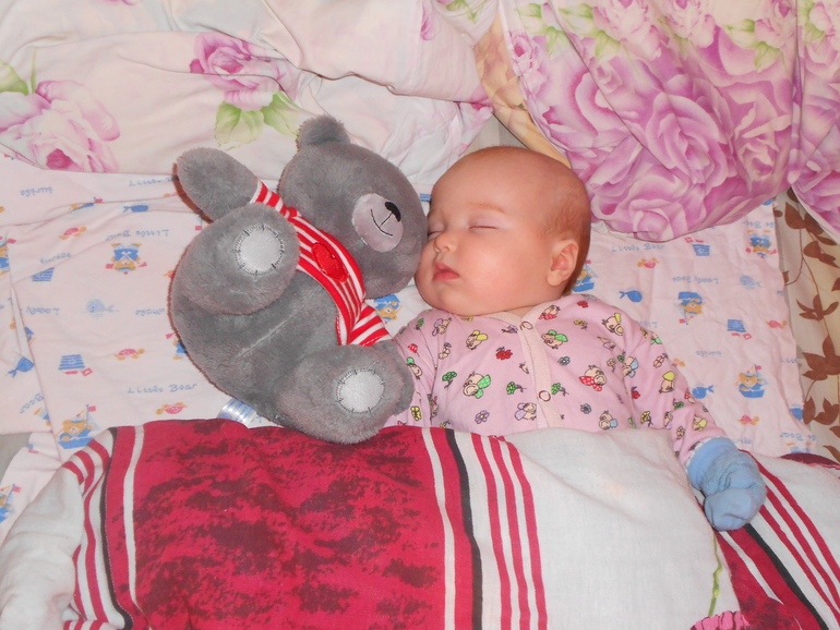 Начали соблюдать ритуал сна: соска, песенка, поглаживание. Чтобы потом легче засыпать было и без соски. Наша песенка - про умку. а еще очень успокаивает шипение. мы с мужем уже иногда на автомате шипим на собаку или чужого ребенка в магазине))) Спим в основном в своей кроватке, только под утро к маме на 1,5 ч залазим. и то мама виновата - не хочет рано вставать. Но вот в гостях оч проблематично уснуть даже с ритуалом. отвлекаемся...