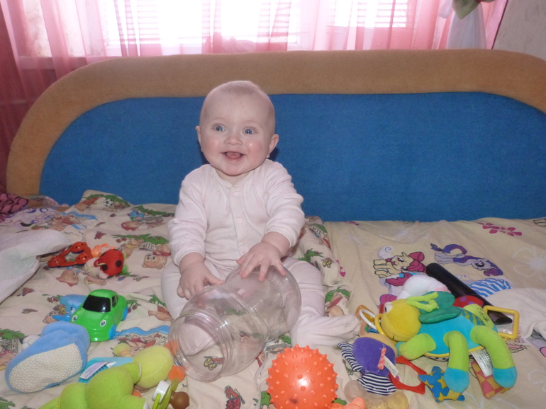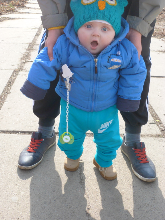 Моему мальчику почти уже 8 месяцев,а я только про 7 нашла время написать!(У нас за это месяц много всего произошло,и в семье и с малышом,и вообще ситуация в городе и стране!начну по порядку!Даничка мой сладенький малыш растет не по дням а по часам,рост и вес не знаю,в поликлинику не вижу смысла ходить!Ну может сходим конечно хоть вес узнаем!Почти научился ползать,я очень рада,на четвереньках стоит,раскачивается,ножками перебирает ,а голову опускает и роет диван)))ну иногда и ползти получается уже,перемещается колбаской по быстрому,несколько раз ловила его,голова и ручки свисали вниз уже....)оооох чуть не посидела в тот момент)Сидеть не сидит,ну если посадить то сидит хорошо играется,может долго сидеть ,спинка ровная,а вот сам пока не хочет порадовать кипишную мамашку)))Зубиков у нас так и нет....(где же они ээх((Наконец-то у нас чуть отросли волосики,будет голубоглазый блондин)Кушали кушали кашки и вдруг наотрез отказался от них,кричит,отворачивается,ужас просто,не пойму что с ним произошло то???Пюрешки кушаем хорошо,печеньки,супчик хочу сварить еще,уже пробовала чуть мяско давать ,вроде понравилось,дальше по плану кефирчик или творожок)Не гуляем уже неделю(Сначало у нас был оооочень сильный ветер,пообрывало линии и мы сидели без света воды и отопления 2 дня!!!!Это был АД!!!Вечером при свечах так вобще кошмар!Потом был мороз и ветер,а Теперь уже 3й день льёт дождь((весна называется(Жду уже с нетерпением теплаааа!В городе всё дорожает с каждым днем,а Зп задерживают и не дают!(Детские деньги обещаю на неделе дать за октябрь и возможно даже в рублях!Пенсионеры в Донецке получали пенсии в рублях,нам сказали тоже возможно!Одна только хорошая новость,что мы НАКОНЕЦ-ТО скоро переедем и будем жить отдельно от родителей!!!УРАААА!!!!Ну как-то даже это не особо поднимает настроение ,оно ужасное которую неделю,сыночек только радует,он так быстро растет,вроде только лежал недавно и звуки издавал,а уже ни минуты покоя))Очень мы его любим!!!какой-то странный пост получился,ну да ладно..Ну и наши фото как всегда)