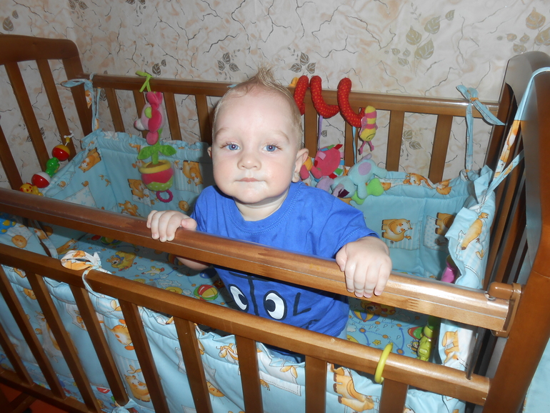 Очень активный, везде лезет, все открывает, уже один раз пальчики прищемил, теперь у нас все завязано.. ползает, встает везде.