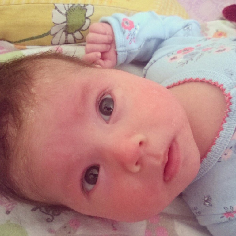 Сначала о не очень хорошем - наши высыпания. Начиная с двух недель, кожа моей малышки редко бывает чистой. Только я начинаю думать, что наши прищыки проходят, через несколько дней высыпает опять( я исключила из меню все аллергены, сменила порошок (хотя высыпания только на личике и не думаю, что причина в порошке) неделю назад наш педиатр подарила нам чудо-крем от лярош и уже через два дня щёчки доченьки были чистыми. Но через пару дней опять Злату высыпало. Мажу дальше, вроде проходит.